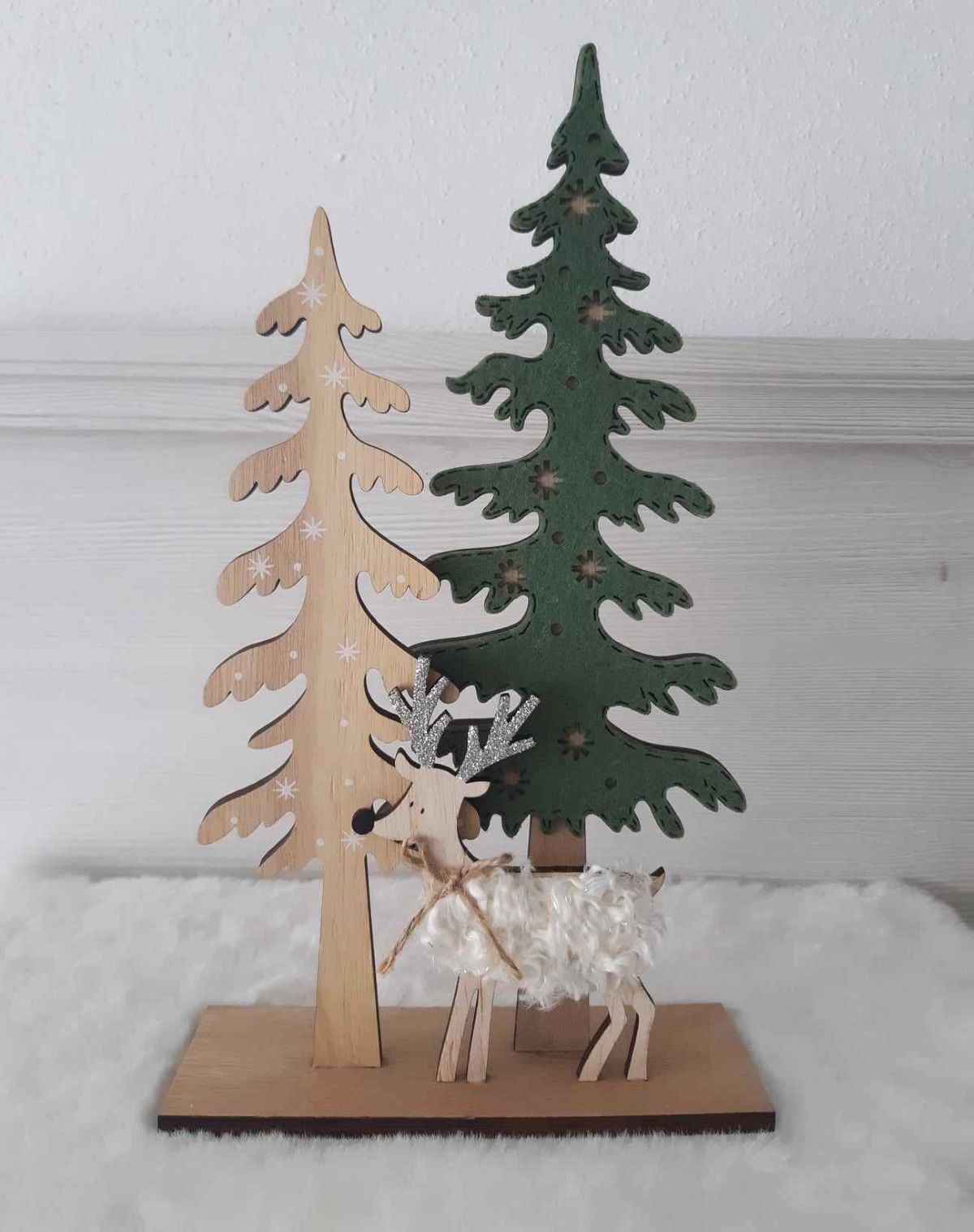 - Dekorácia drevené stromčeky s jelenčekom, výška: 30cm