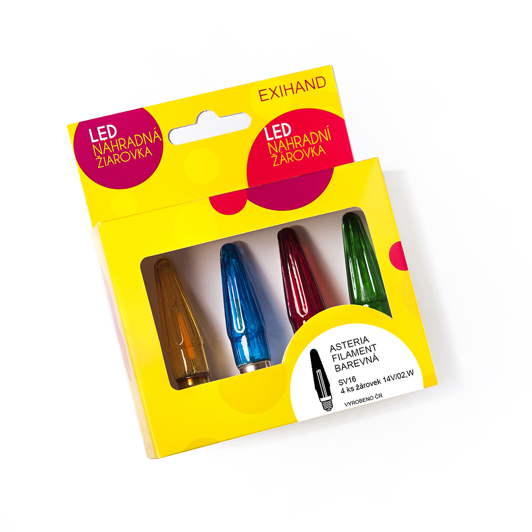 - Ledková žiarovka ASTERIA FAREBNÁ 14V/0,2W krabička 4ks