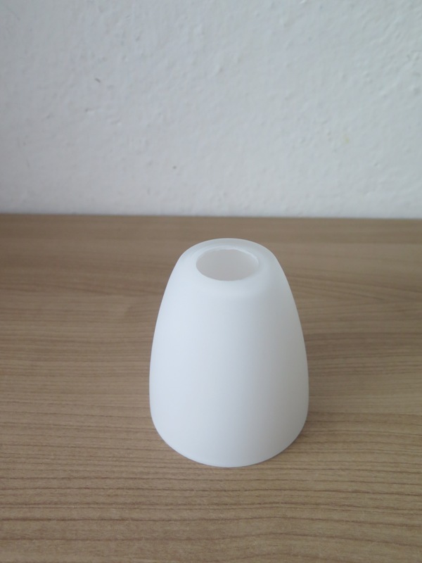 rozmery tienidla: vrchný priemer otvoru: cca 3cm (otvor na objímku E14), spodný priemer: 8,7cm (vonkajší okraj) ,8cm (vnútorný otvor) výška: 9,5cm, váha: 190g