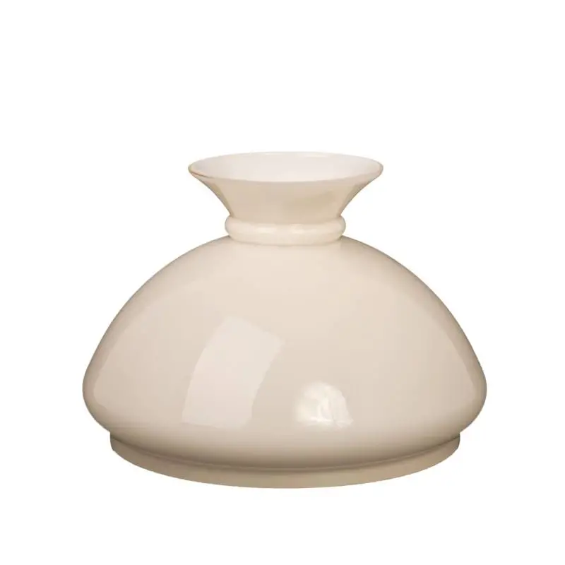 Sklenené lesklé béžové tienidlo ručne vyrobené z vysoko kvalitného opálového (mliečneho) skla. Montážny otvor 18,6cm. Ideálne pre petrolejovú/olejovú lampu alebo jej modernú elektrickú verziu.