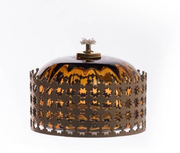 farba tienidla: hnedé sklo - nádoba na petrolej/vonný olej, konštrukcia: mosadzmateriál: sklo, kovrozmery: výška 21cm
