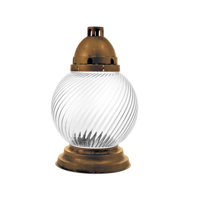 - Sklenený náhrobný kahanec bez náplne číry točený/zlatý, výška: 31,5cm