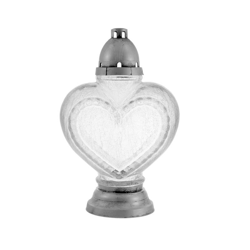- Sklenený náhrobný kahanec v tvare srdca bez náplne matný/strieborný, výška: 35,5cm