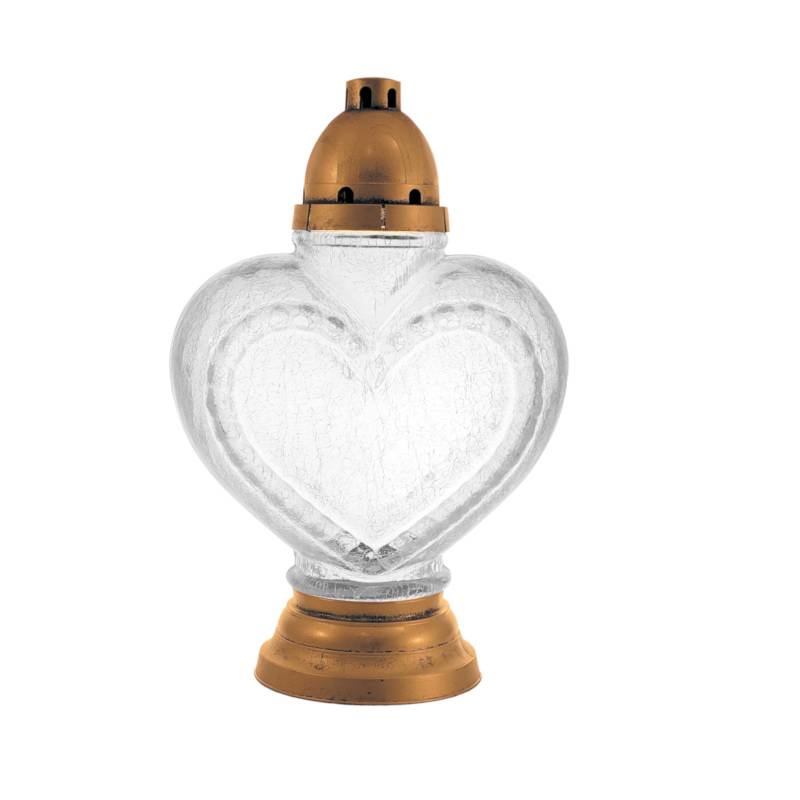 Sklenený kahanec na hroby v tvare srdca (bez sviečky)
