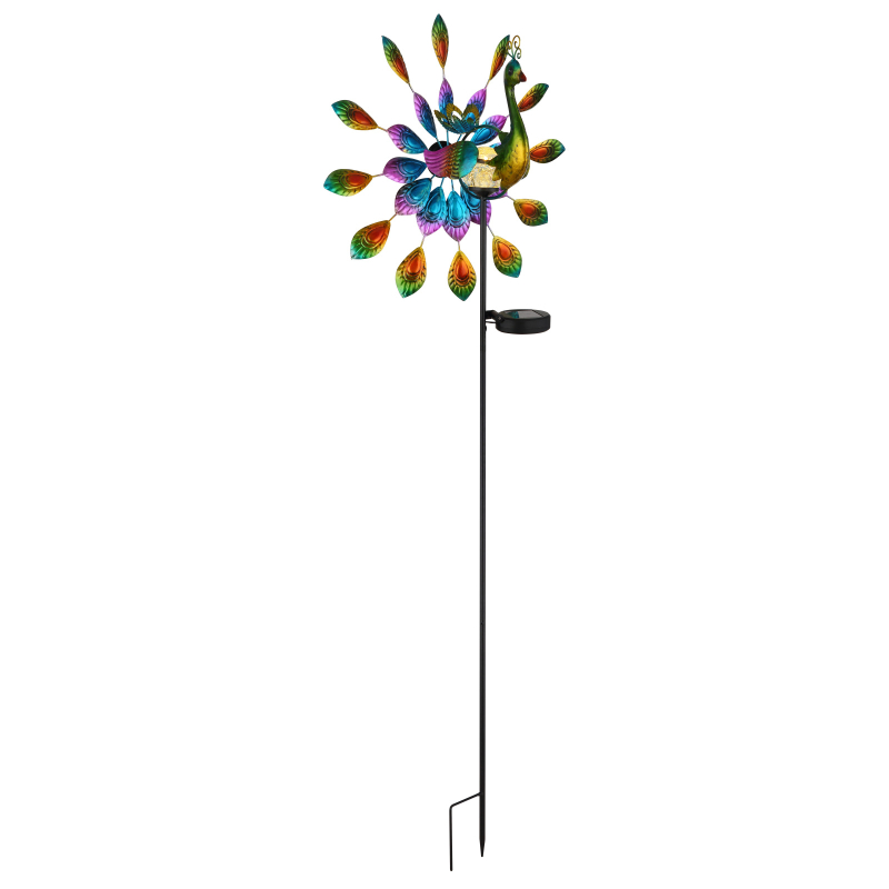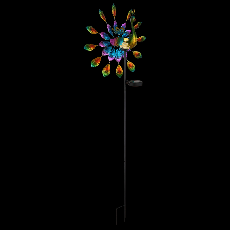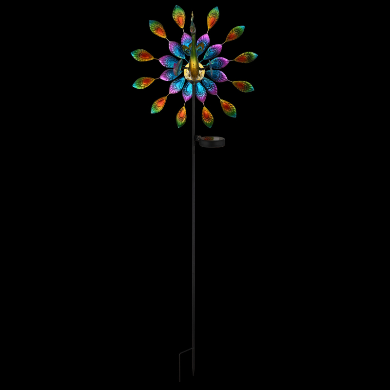 - Solárne zapichávacie led svietidlo PÁV veterné koleso mat.čierna +viacfarebná LED 3V/3000K IP44, výška: 120cm