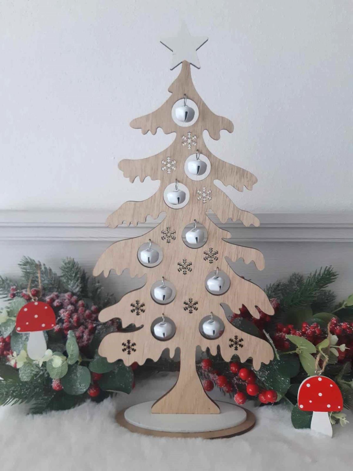 - Vianočná dekorácia drevený stromček s roľničkami, výška: 43cm