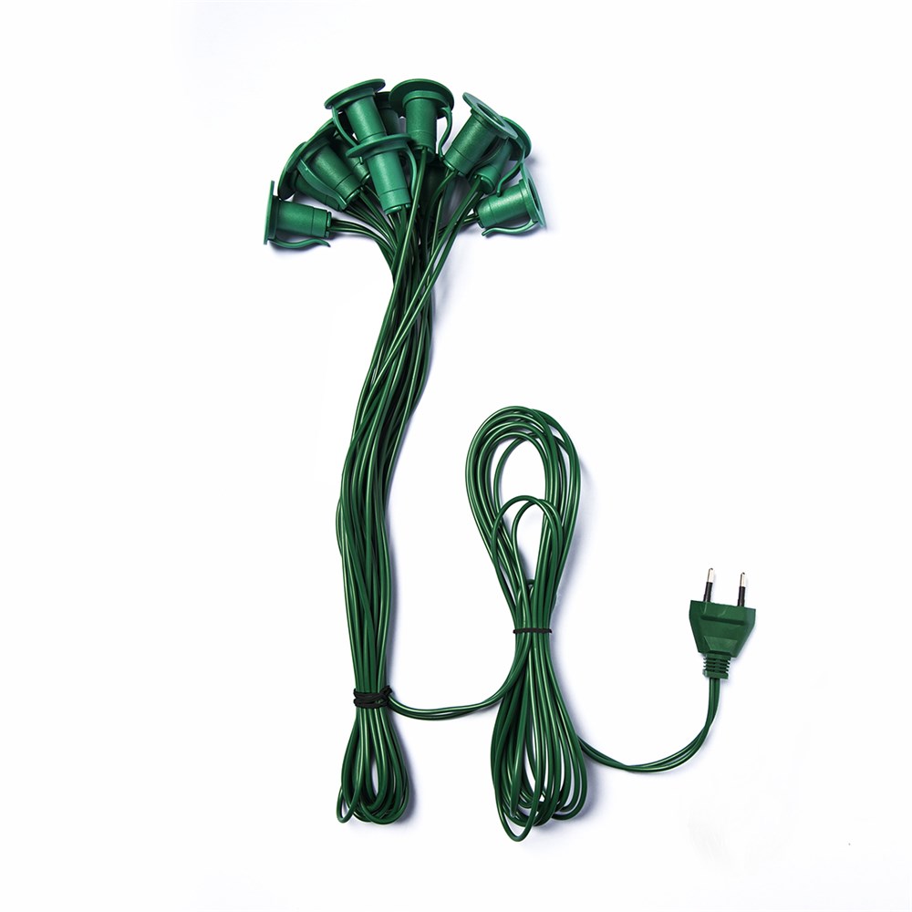 Táto náhradná reťaz pozostáva z 12ks objímok s klipom bez žiaroviek Je určená pre 12ks 20V tvarových žiaroviek: muchotrávka, snehuliak, stromček, šiška, lucerna - dĺžka reťaze s objímkami: 7,7m - prívodný kábel 3m - rozostup medzi objímkami: 70cm - celková dĺžka reťaze: 10,7m - celkový príkon: 23W - napätie: 230V - počet žiaroviek: 12ks (nie sú súčasťou) - reťaz je určená pre stredne veľké stromčeky - stupeň krytia: IP20 - interiér - uchytenie plastovým klipom - balenie: prívodná flexošnúra + 12 objímok + typový štítok + celofán
