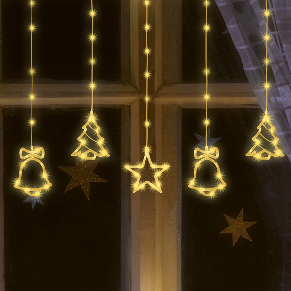 - 10ks svietiacich reťazcov so striedaním figúrok: zvonček/stromček/hviezda