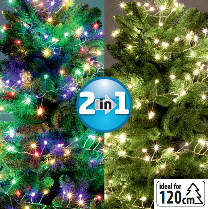 Vonkajšia vianočná reťaz duálna girlanda (cluster reťazec) 600ks mikroLED diód viacfarebných/teplých bielych - 11 programov + diaľkové ovládanie